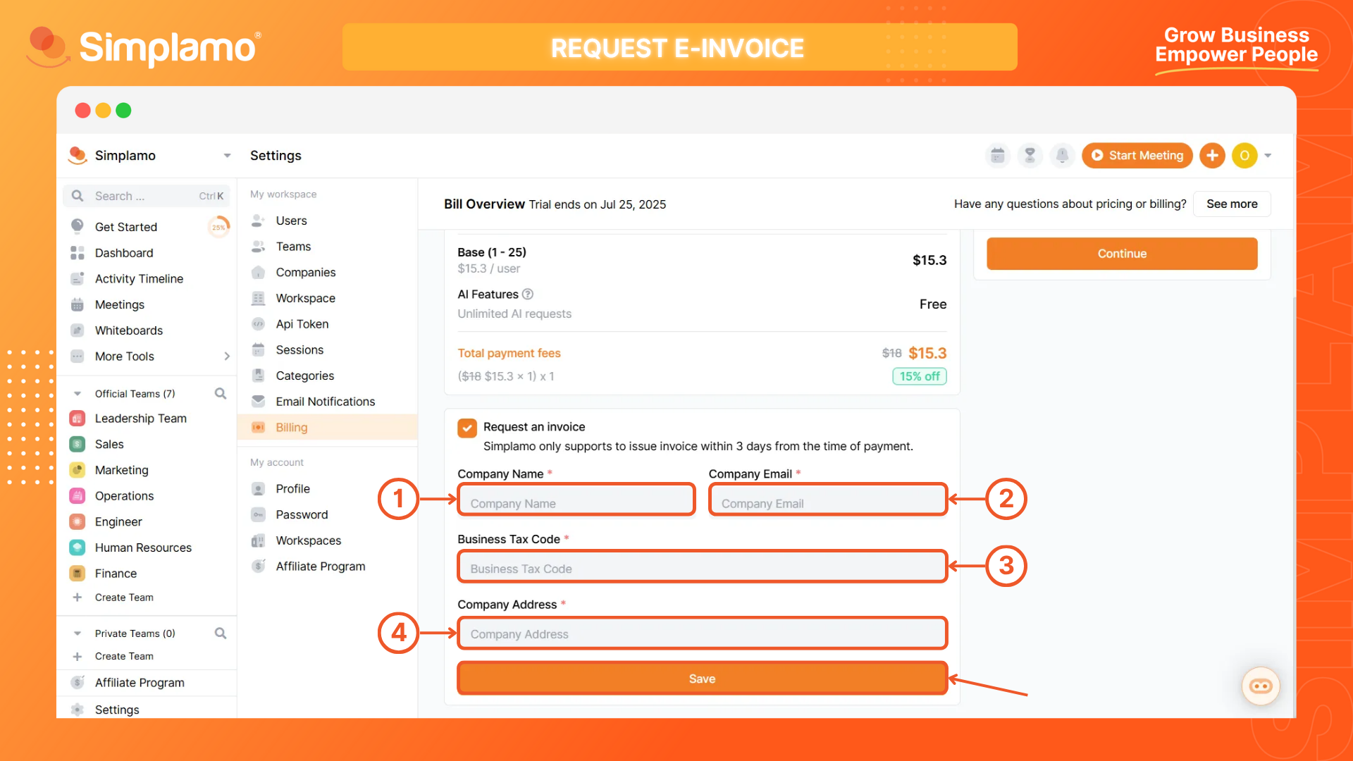 In case you wish to add or change invoicing information, please contact us via [email protected] for the quickest support.