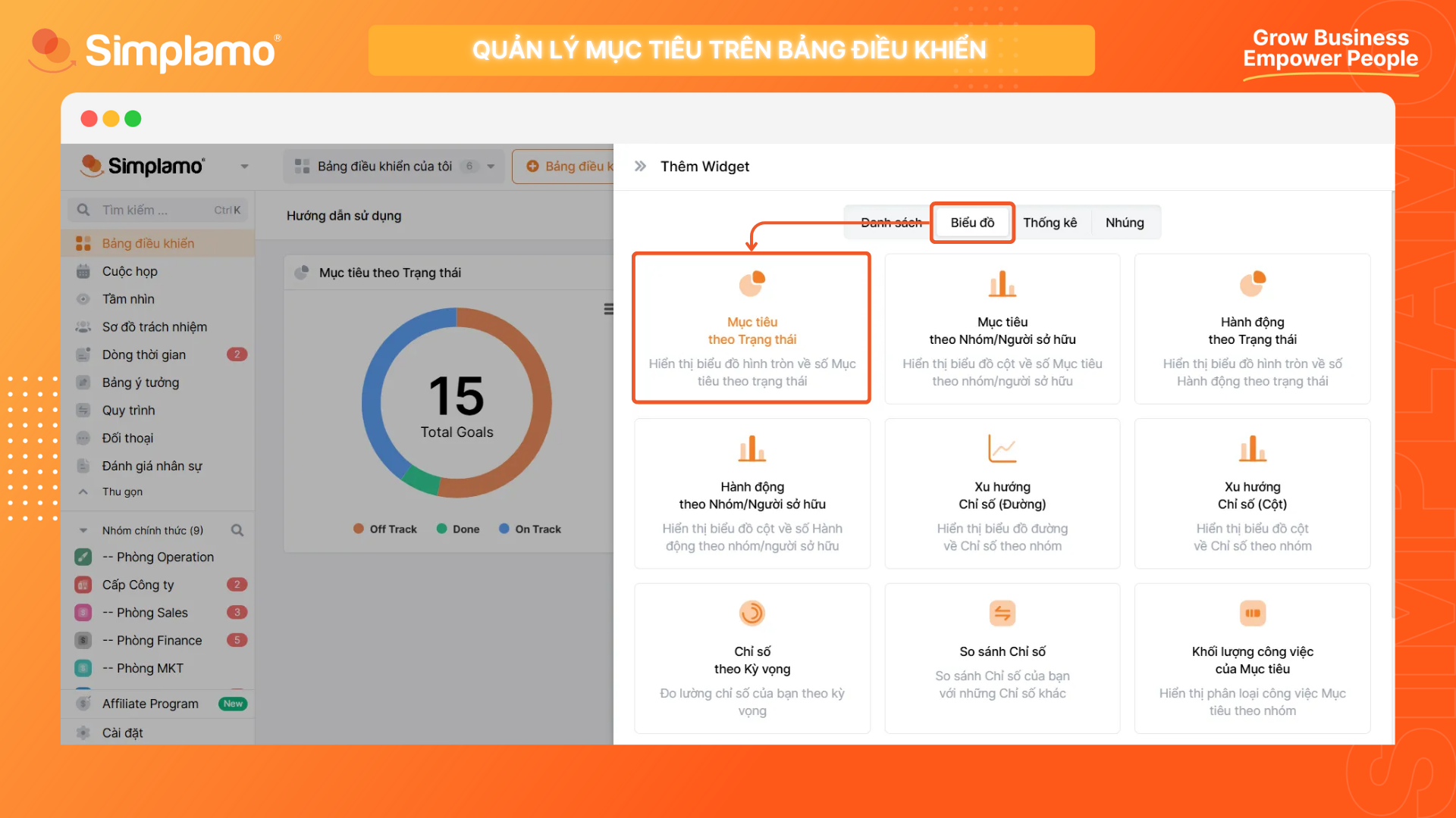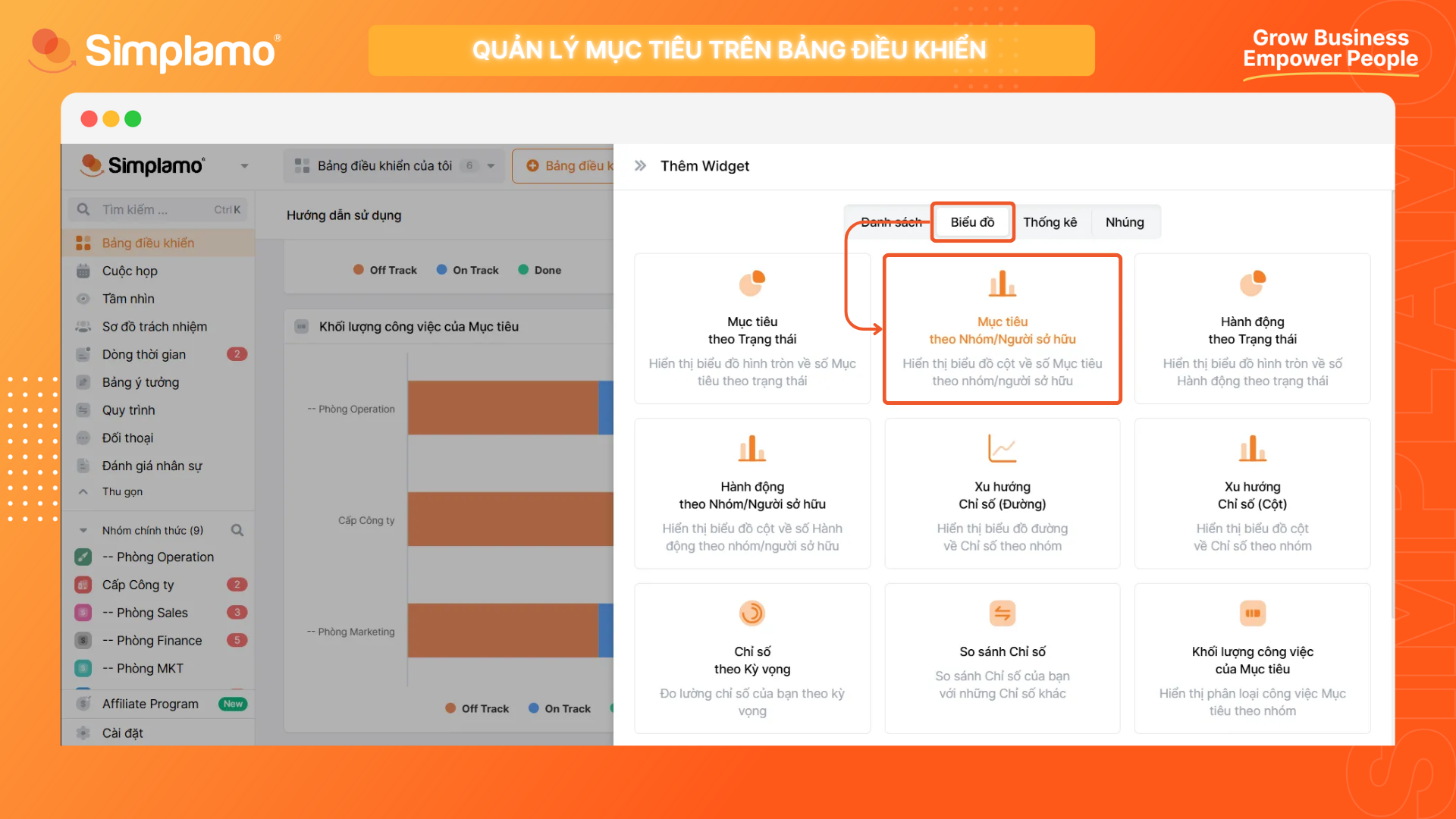 Sau đó chọn Biểu đồ và chọn Mục tiêu theo Nhóm/Người sở hữu.