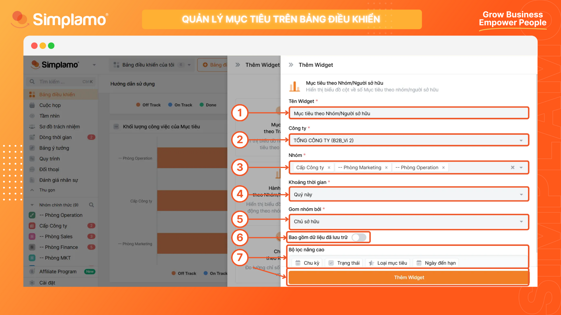 - (5) Bạn có thể chọn gom các nhóm cột theo từng phòng ban hoặc từng cá nhân;