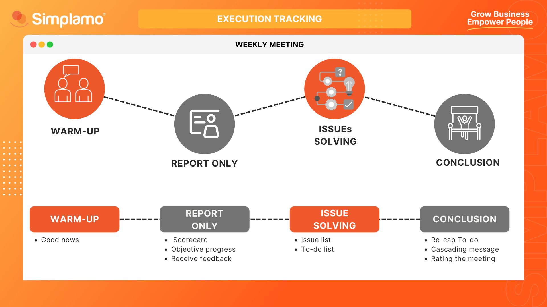 To organize an effective weekly meeting rhythm, the following points should be remembered: