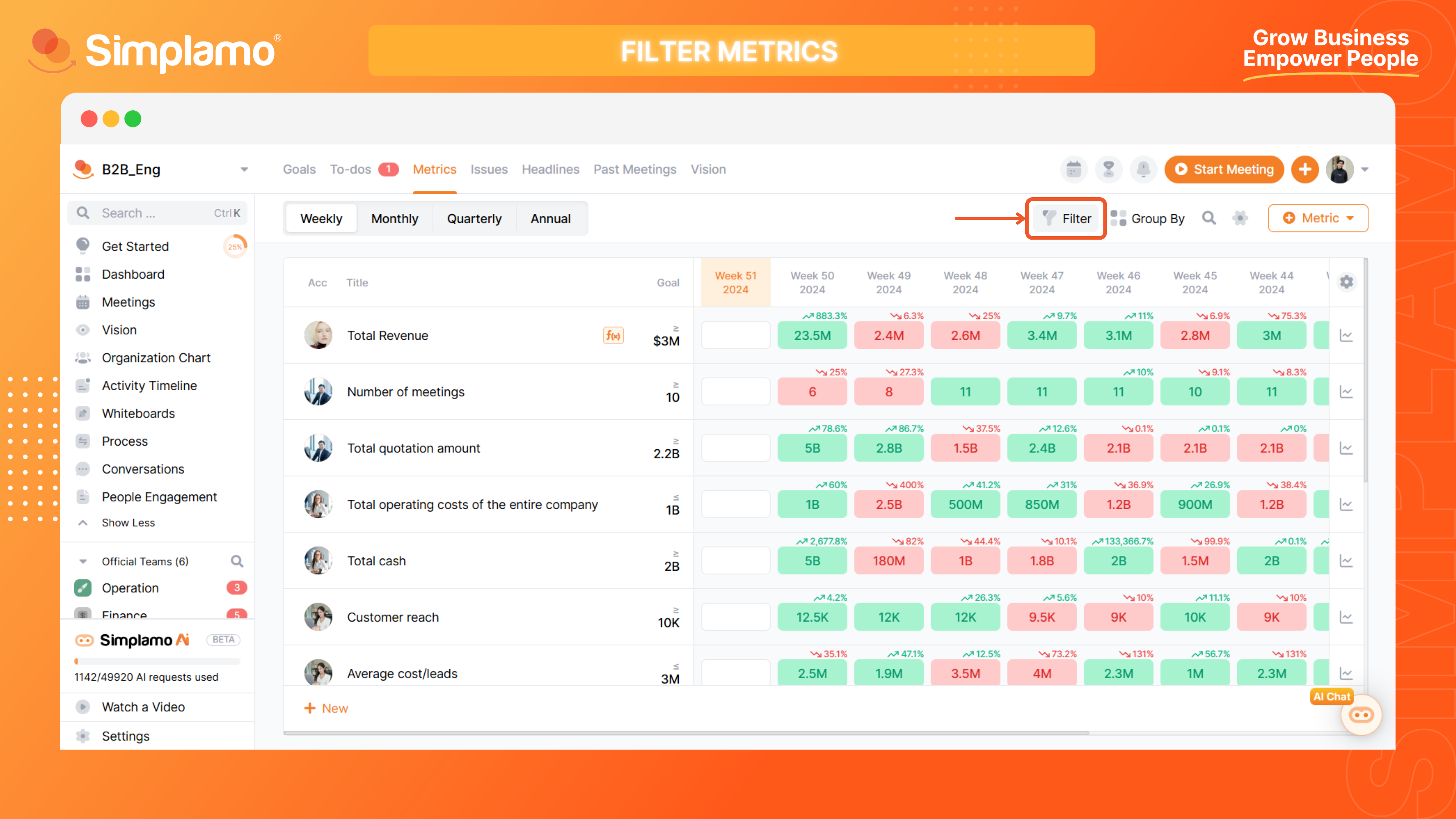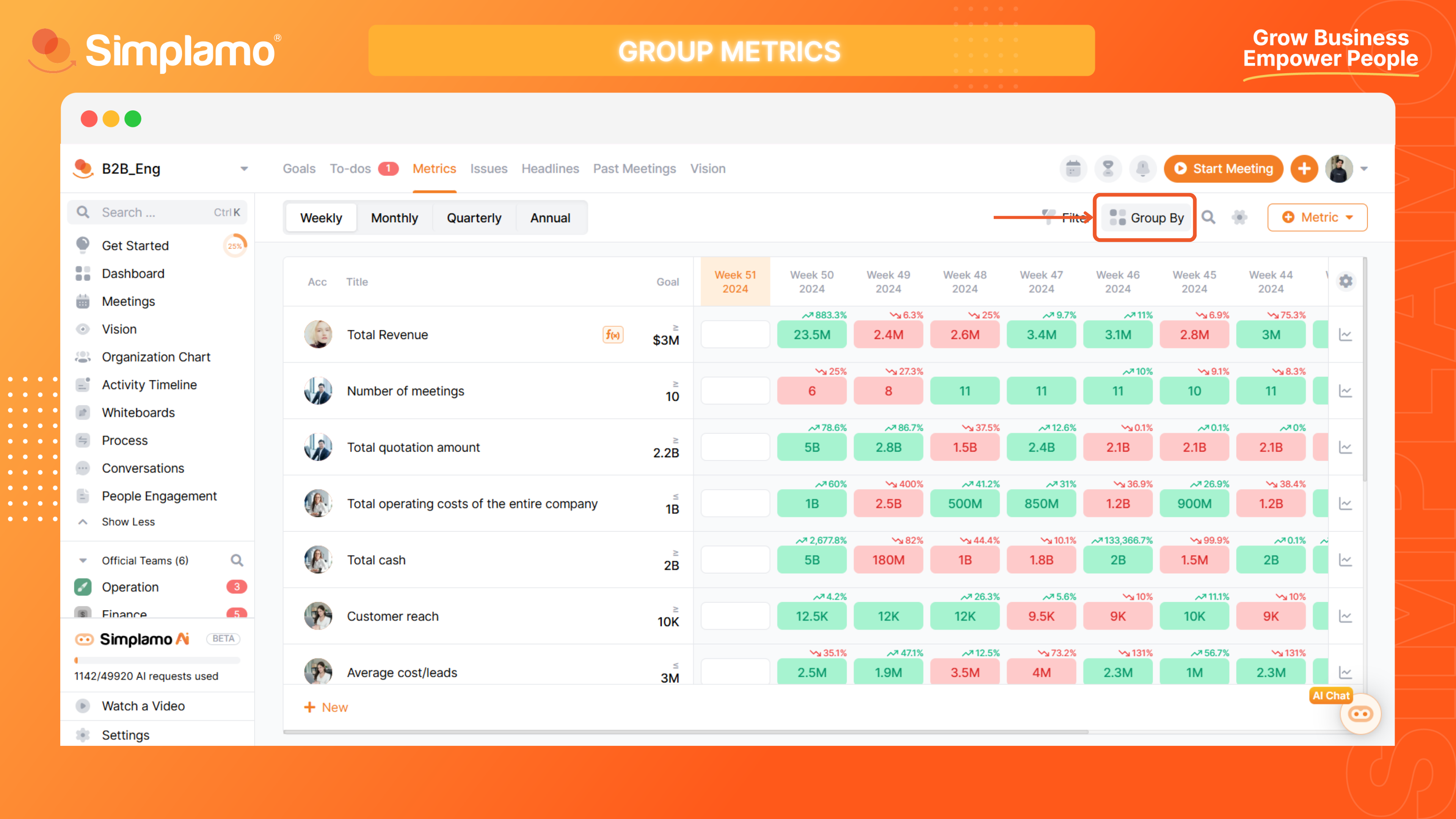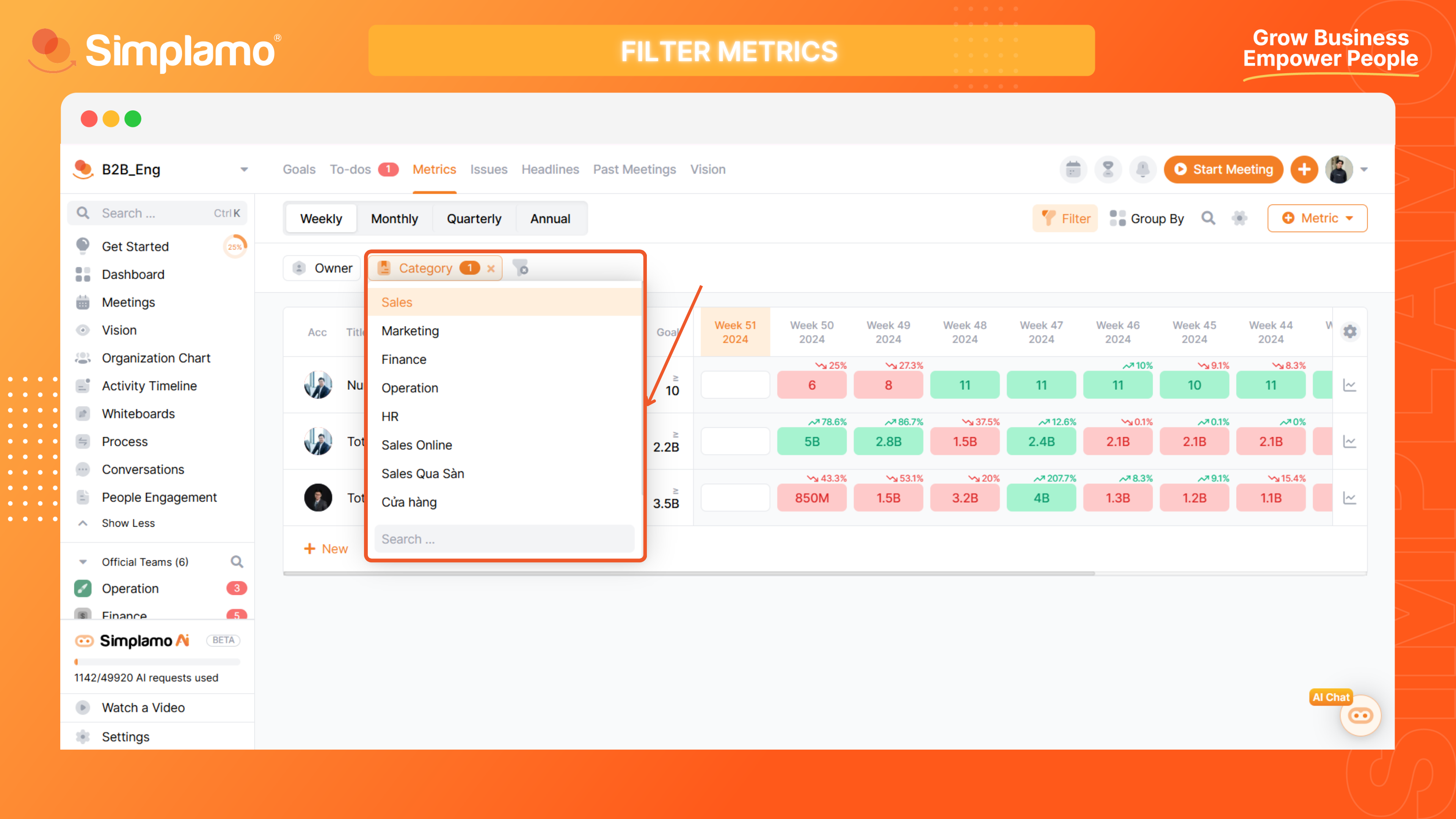 This is how to filter and group metrics. Let's work together to monitor our company's metric table and achieve our common goals most effectively.