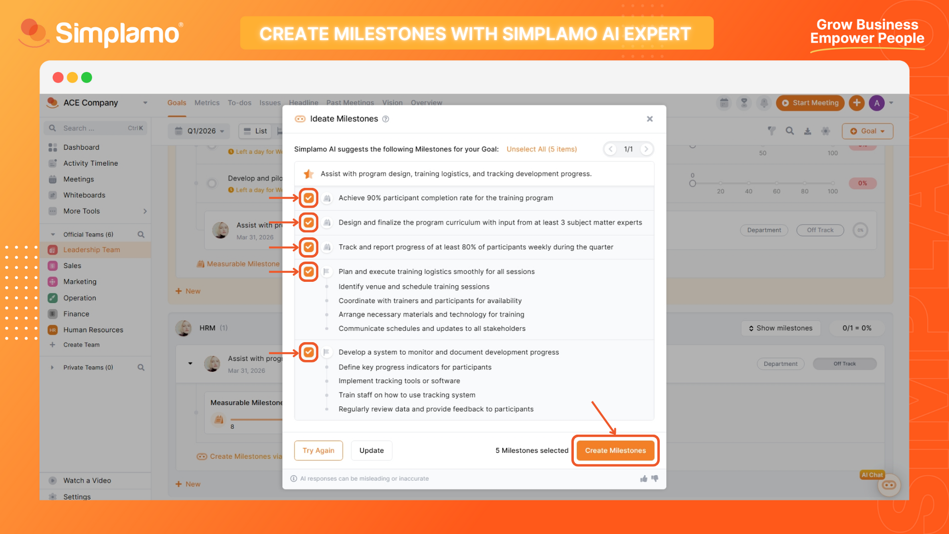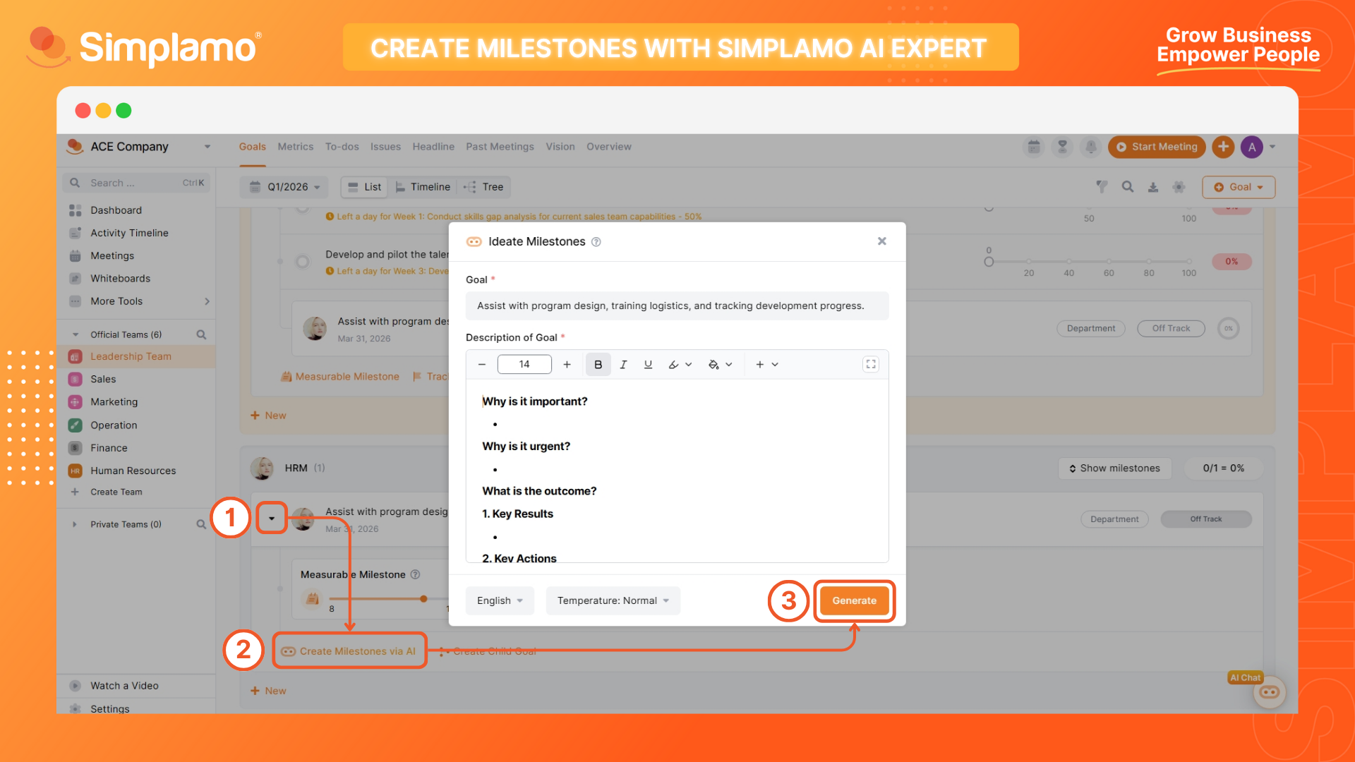 In such cases, Simplamo AI Expert 🤖 can help you quickly break down your goals into clear milestones ✅.
