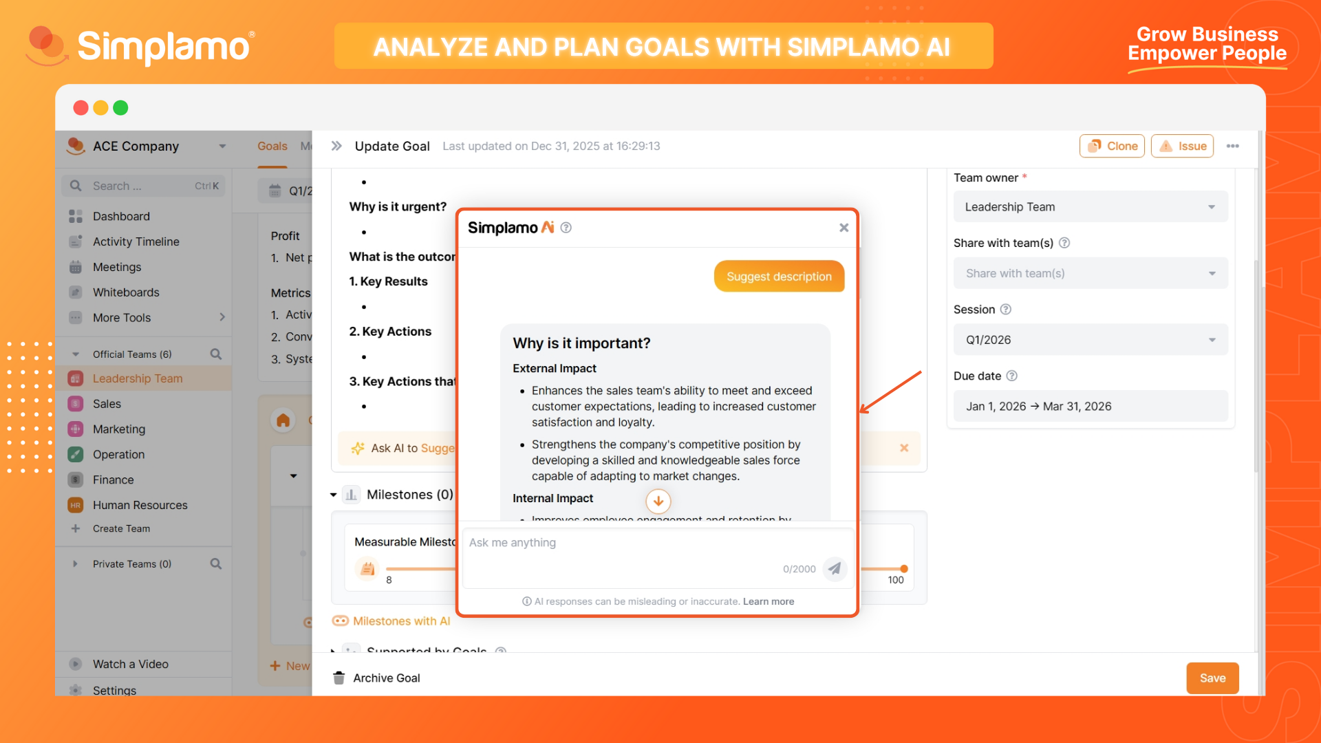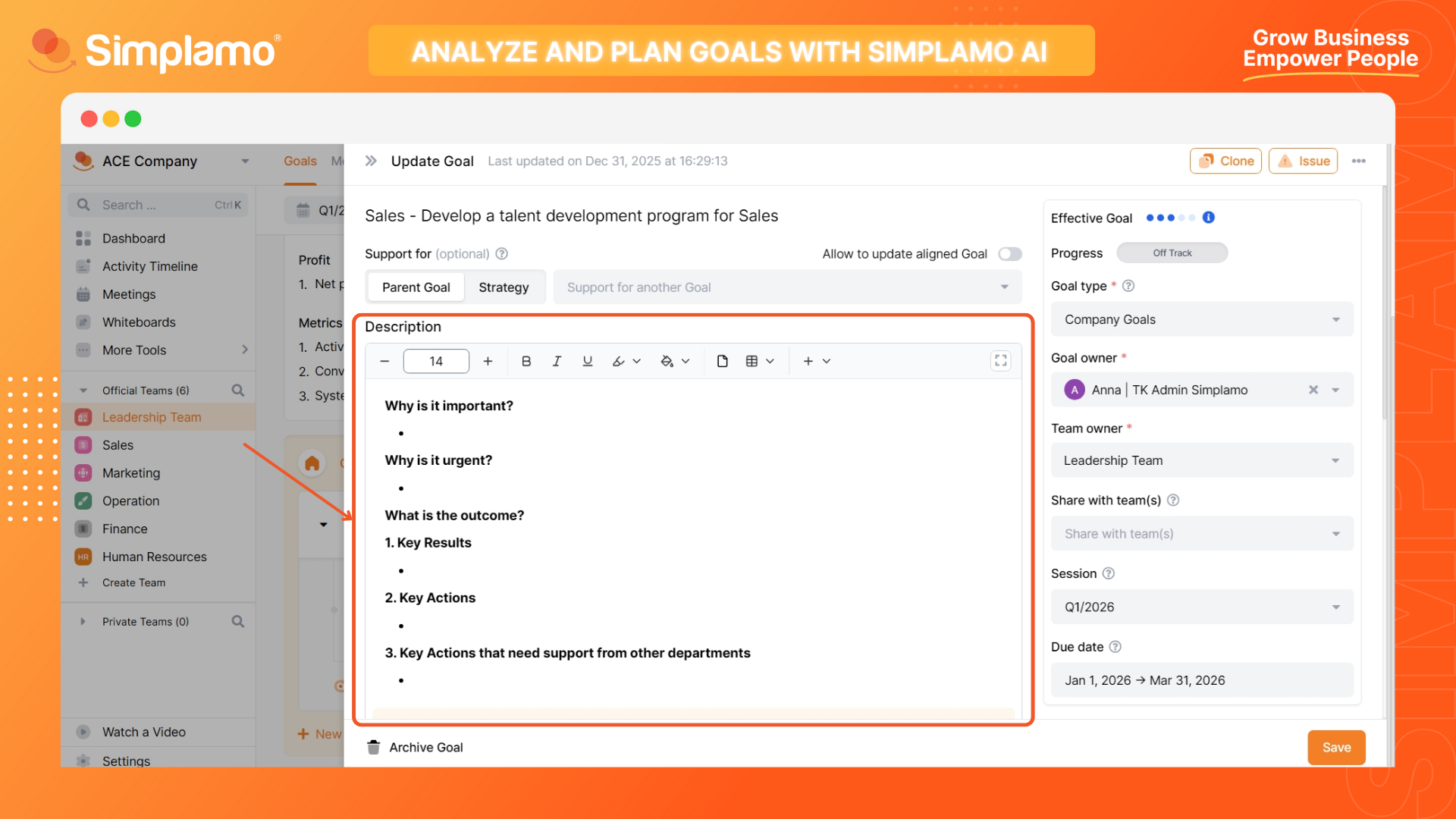 When setting a goal on Simplamo, you are encouraged to analyze it clearly by answering 3 key questions: