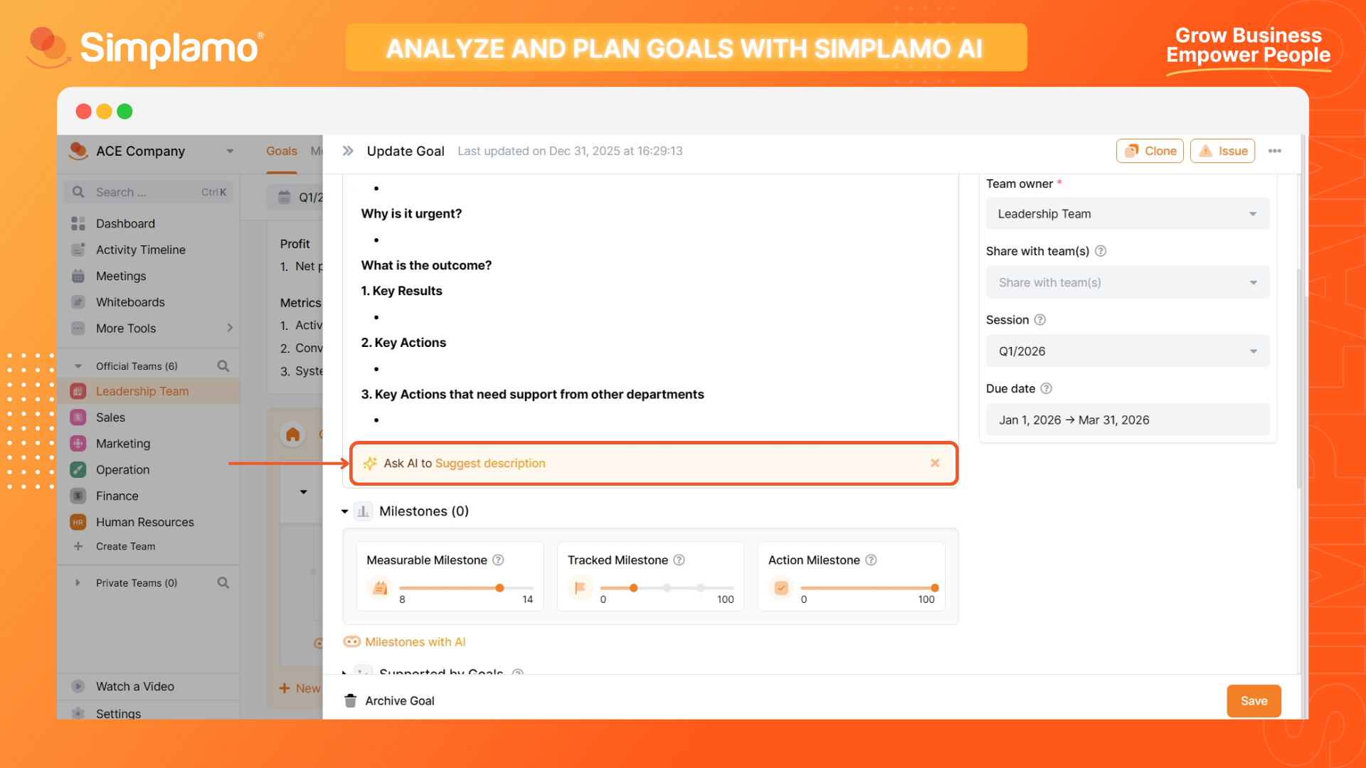 Step 1: Open the goal you want to analyze and select "Ask AI to Suggest Description".