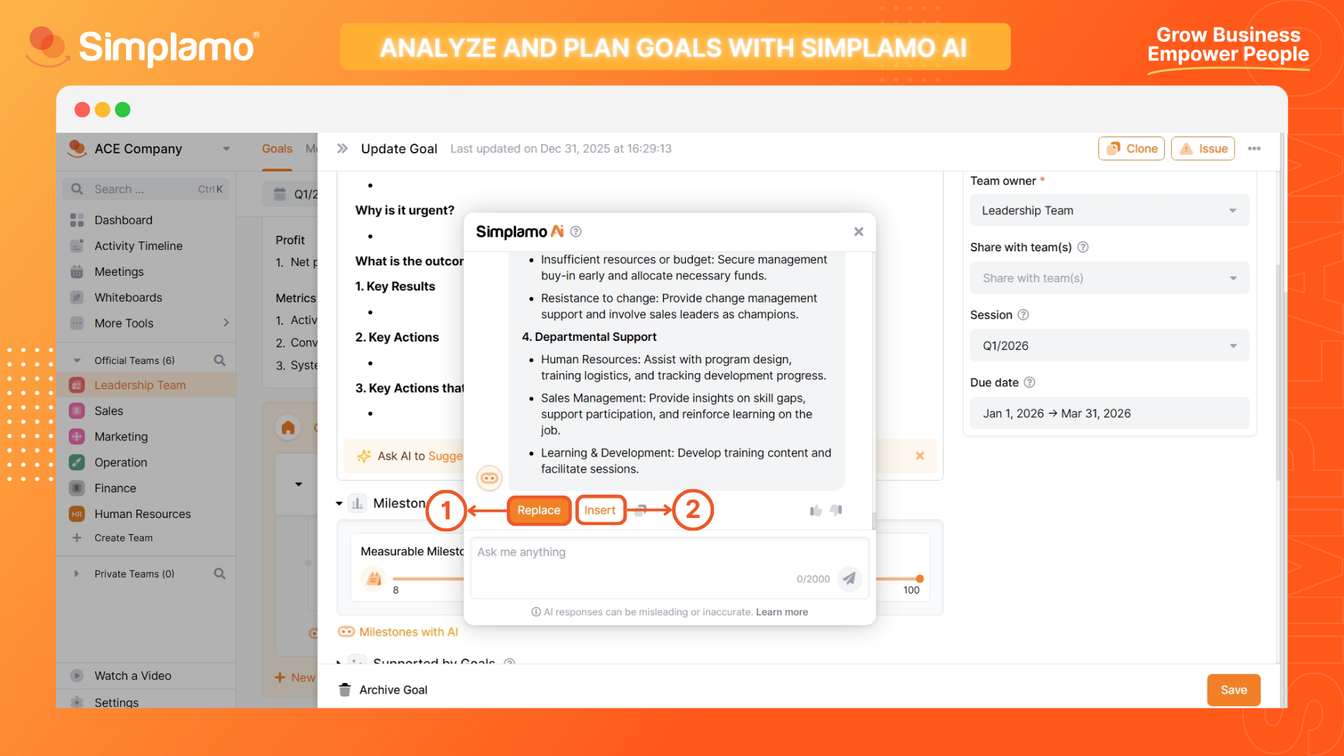 Here are the steps to reference goal analysis from Simplamo AI Expert: