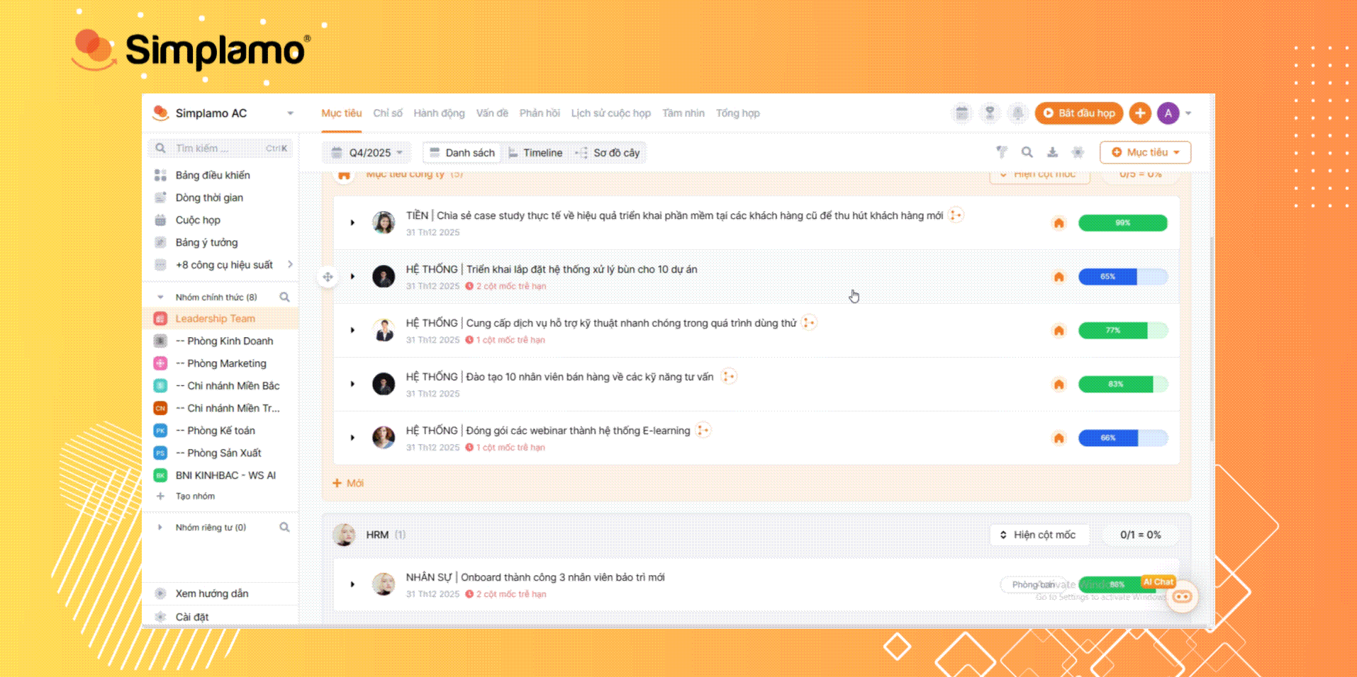 - Fixed lỗi logic liên quan đến việc Nhóm phòng ban có thể tạo được mục tiêu công ty (Đảm bảo đúng luồng tạo mục tiêu theo cấp bậc).