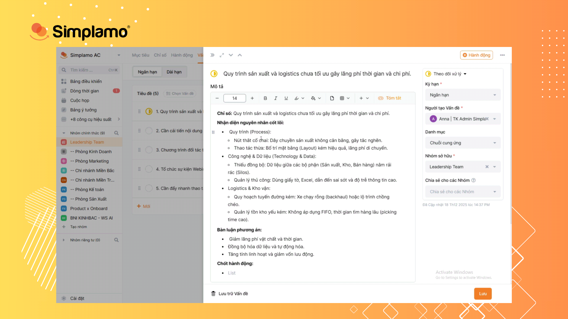 Phiên bản 2.15.3 tập trung vào việc tối ưu hóa trải nghiệm thao tác nhanh (Quick Actions) để gia tăng hiệu suất xử lý Issues và Todos. Đồng thời, chúng tôi nâng cấp khả năng trực quan hóa dữ liệu trên Dashboard và hoàn thiện cấu trúc vận hành cuộc họp.