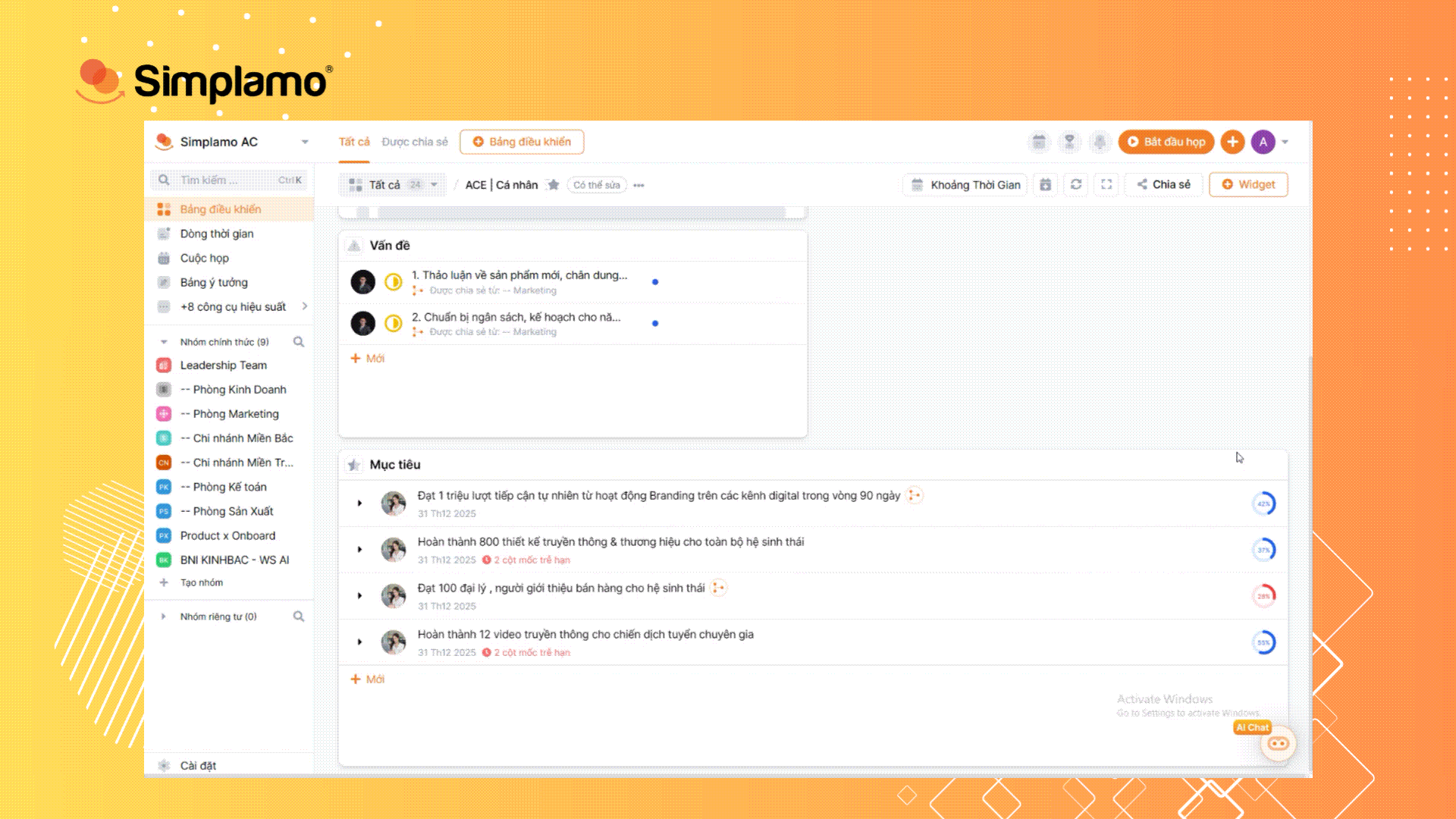 [Dashboard] Chế độ xem Timeline & Sơ đồ cây (Tree View): Widget Mục tiêu nay đã hỗ trợ hai chế độ xem mới, giúp bạn dễ dàng theo dõi tiến độ và mối quan hệ giữa các mục tiêu một cách trực quan nhất.